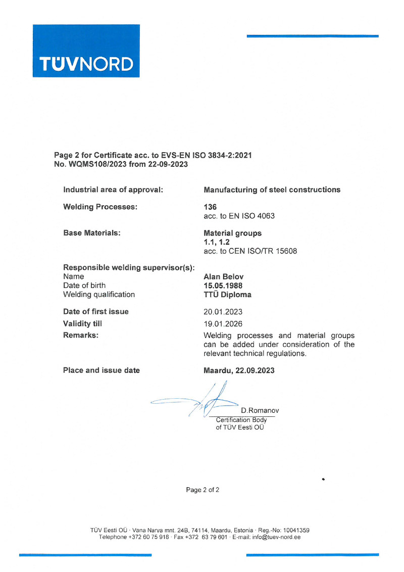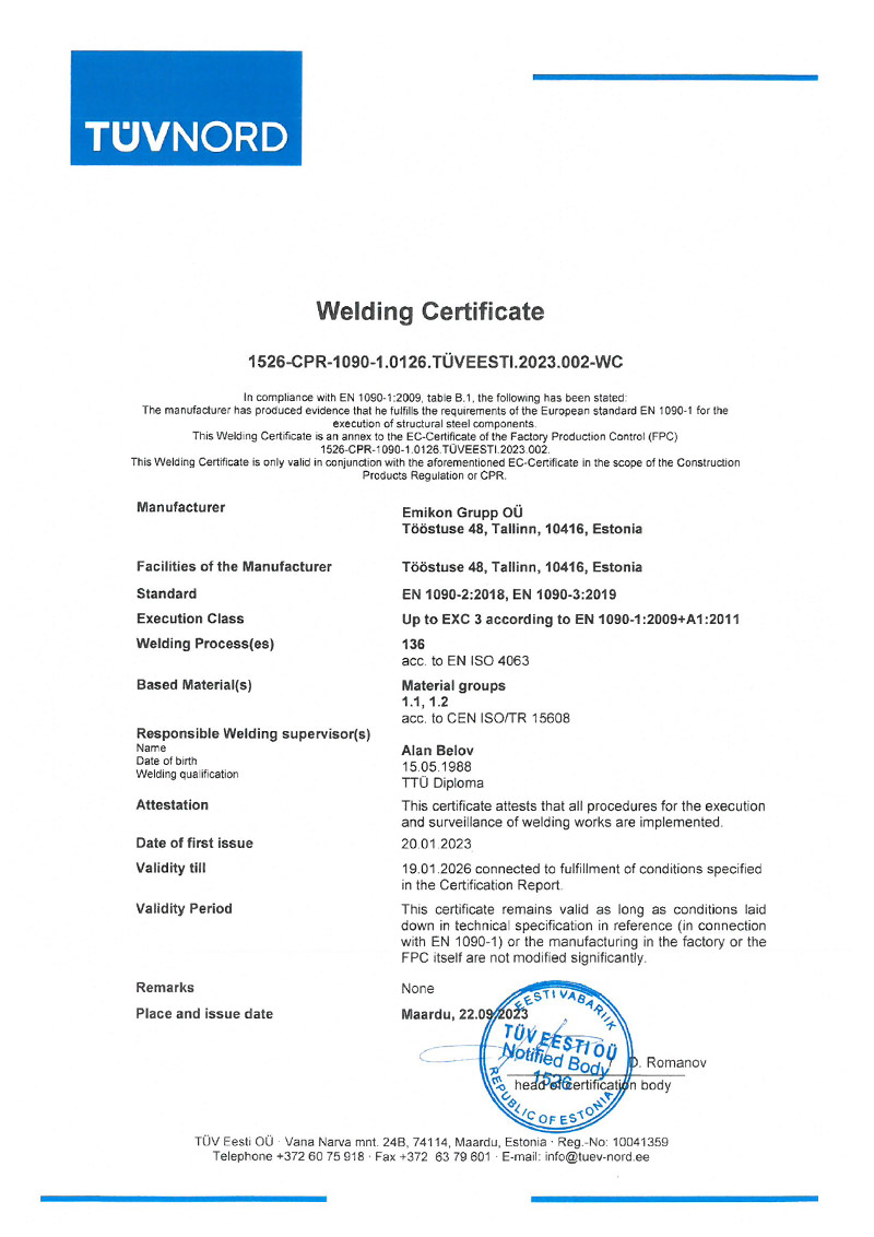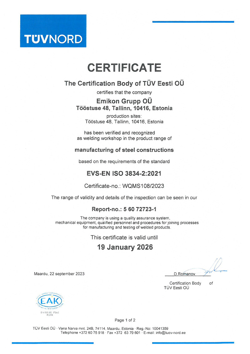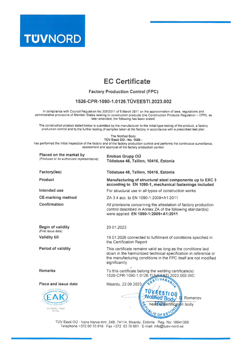 Emikon Grupp OÜ was founded in 2006. Company is able to produce 70t steel constructions in month.